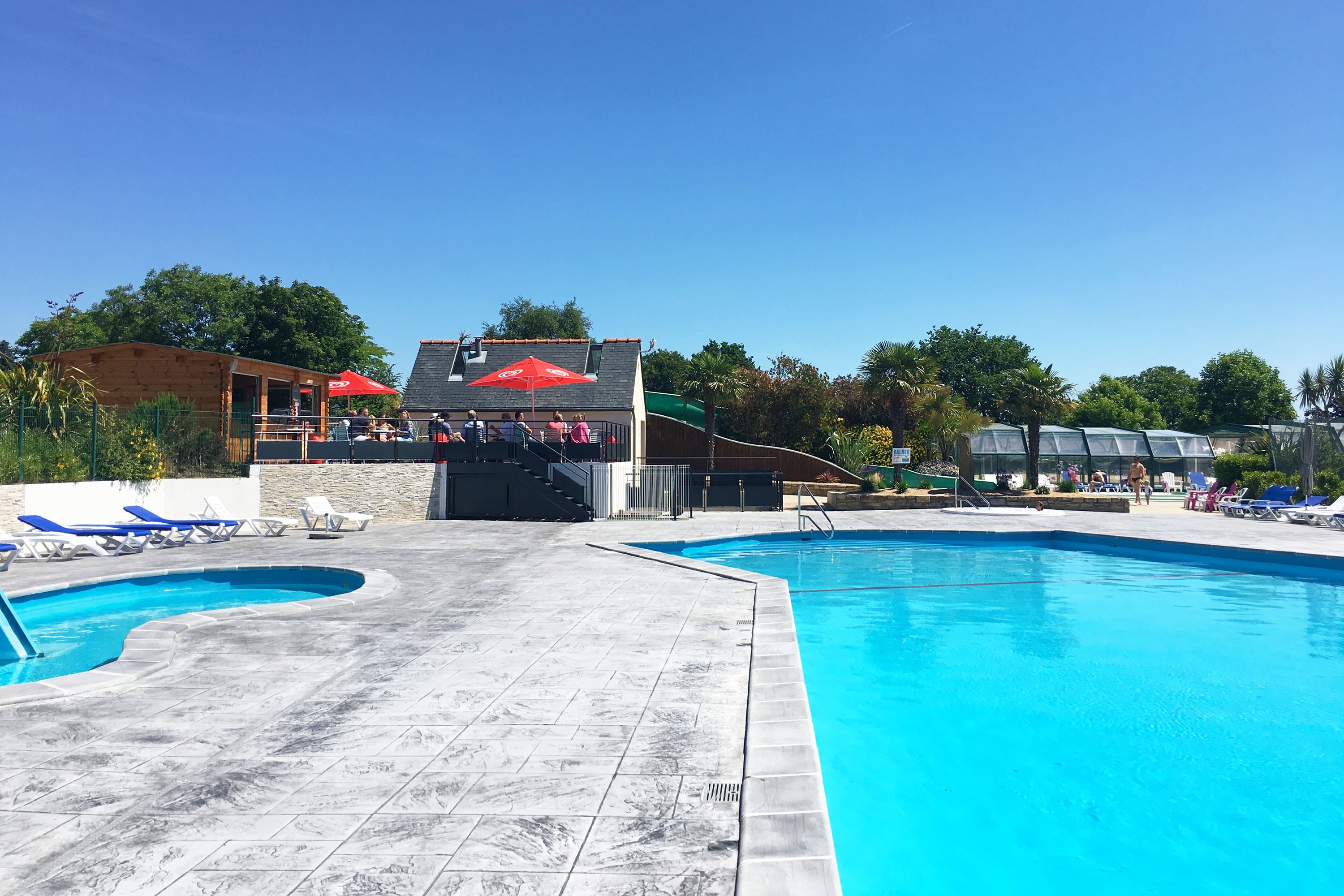 Camping De Kéranterec, gelegen in het pittoreske La Forêt-Fouesnant, is een waar paradijs voor vakantieliefhebbers die op zoek zijn naar rust, natuur en plezier. Deze gezinsvriendelijke camping biedt ruime staanplaatsen, omringd door bloeiende struiken en groene beplanting. Houd er rekening mee dat sommige delen van de camping met steile paden te maken hebben, maar dat maakt de charme alleen maar groter. Op slechts 450 meter afstand ligt een prachtig zandstrand, waar je kunt genieten van de zee en de zon. Voor de liefhebbers van waterplezier zijn er een verwarmd open zwembad en een overdekt zwembad met glijbanen, perfect voor zowel ontspanning als vermaak.