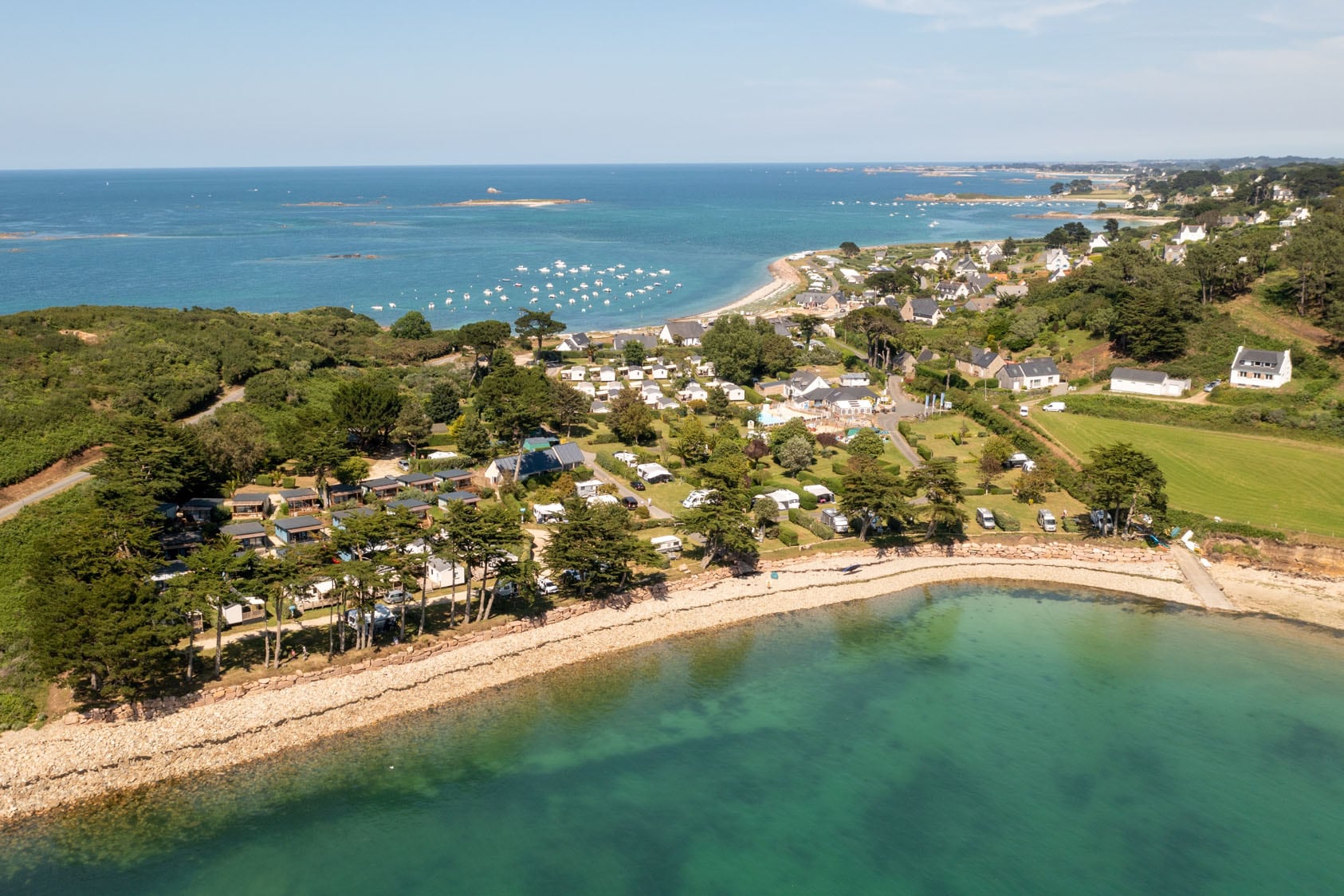Camping RCN Port l’Epine, gelegen in het schilderachtige Trélévern in Bretagne, is een verborgen parel voor vakantieliefhebbers die op zoek zijn naar rust en natuurschoon. Deze charmante, kleine camping is uniek gepositioneerd op een prachtige kaap, wat betekent dat je hier de hele dag kunt genieten van adembenemende uitzichten over de zee. Aan de zuidzijde biedt de camping een panoramisch zicht op het bruisende Perros-Guirec, terwijl je aan de noordkant uitkijkt op een prachtig strand met zicht op maar liefst zeven eilandjes. Het is een plek waar je je kunt onderdompelen in de natuur en de schoonheid van de Bretonse kust.